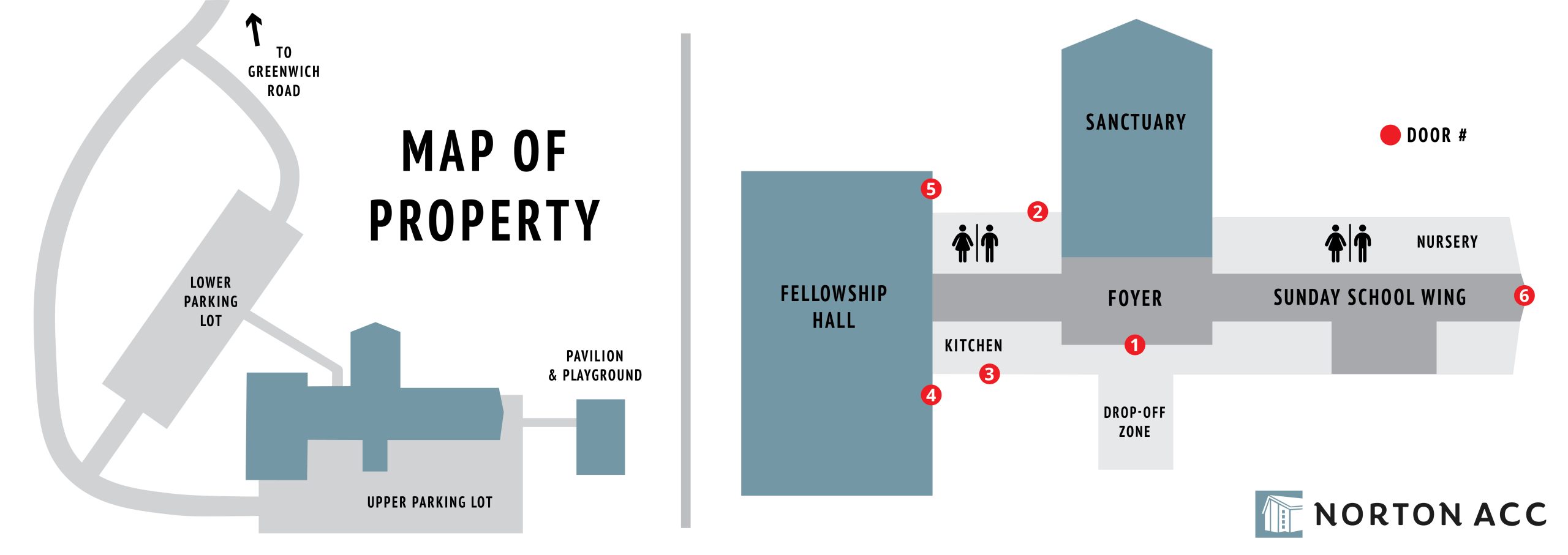 Accessible Restrooms – Handicap accessible restrooms can be found in the Sunday School Wing (to the right when you enter the church).